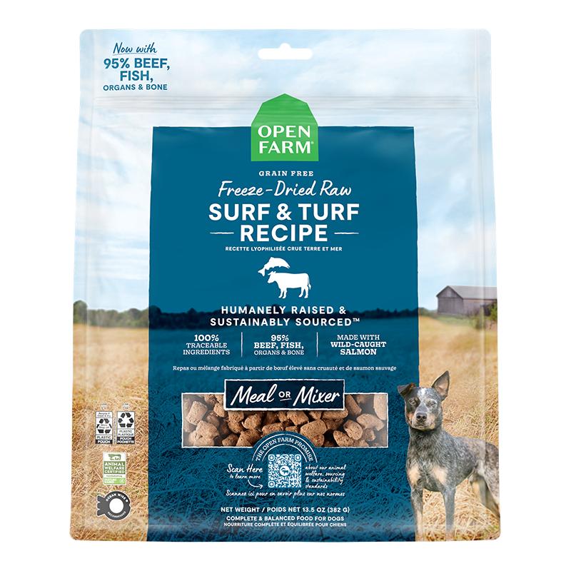 Open Farm Surf & Turf Recipe dog food is formulated to meet the nutritional levels established by the AAFCO Dog Food Nutrient Profiles for all life stages.