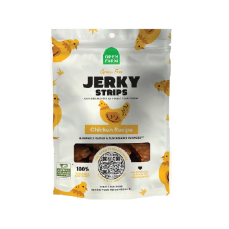 Your dog will crave these Grain-Free Chicken Jerky Strips from Open Farm! Made in the USA with human-grade ingredients, these jerky treats feature savory, humanely raised chicken that your pooch will adore. These meaty snacks are also crafted with chickpeas and flaxseed making them rich in fiber, omega-3 fatty acids, iron, zinc, copper, and magnesium. And, thanks to the soft texture of these treats, they're easy to break into smaller pieces for pups of any size. Packed with protein and full of flavor, these jerky strips are just the snack your furball has been waiting for!