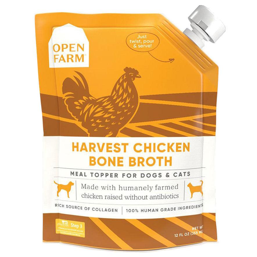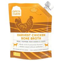Put a little extra love and nutrition into every meal with Open Farms Harvest Chicken Bone Broth! Ethically raised chicken bones are slowly simmered with superfoods like pumpkin, carrots, and turmeric all locally sourced from trusted farmers and free from GMOs, grains, growth hormones, salt, garlic, and onions! Use it as a topper, rehydrate freeze-dried food, or freeze in cubes for a healthy snack. Great for both dogs and cats!