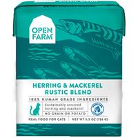 Bring nature's best to your cat's bowl with Open Farm's Herring & Mackerel Rustic Blend. It's made from 100% human-grade, Ocean Wise approved ingredients, like wild-caught herring and mackerel, and nutrients-rich superfoods such as pumpkin, carrots, and cranberries. There are no grains, potatoes, hormones, or GMOs, and every container is easy to open, reseal, and recycle. Available in 5.5 oz containers. Made in the USA.