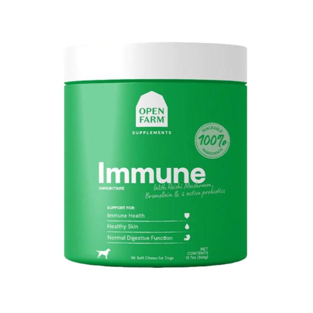 Open Farm's Immune Support chews contain turmeric, chaga and reishi mushrooms, bromelain, quercetin and probiotics to help support your pet's immune and skin health in a tasty chew your pet will love. Made with 100% traceable and vet-recommended ingredients.