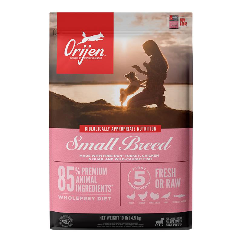 Small-breed dogs have specific nutritional requirements in order to thrive. ORIJEN Small Breed is made with your little one in mind, chock full of healthy protein and nutrients in a shape that's easy to eat. This biologically appropriate recipe features turkey, chicken, quail, cage-free eggs, rockfish, herring, liver and heart with added superfoods like squash, pumpkin, apples, carrots, spinach and blueberries. A veritable feast your dog will find delicious and satisfying.