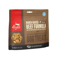 With just three savory and tasty ingredients ORIJEN Ranch-Raised Beef Freeze-Dried Treats are made with 100% raw beef, freeze-dried to lock in protein and nutrients. Simple, healthy and nutritious treats your dog will love. Made in the USA.