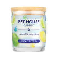 Trade the smells of wet pet fur and muddy paws in your home for the refreshing mixture of oceanside sea salt crystals with Pet House's Sea Salt & Citrus Candle! Blended with fragrant notes of sea moss, lemon water, bergamot and rosewater, this candle is made with an odor neutralizing formula to keep your home smelling fresh. Hand poured, this candle is made with 100% plant based wax and will burn for up to 60 hours. When you finish the candle, reuse the glass jar for treats and more!