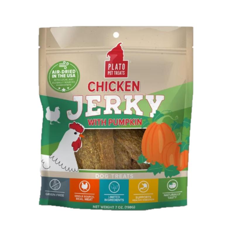 Delicious and nutritious, Plato's Chicken Jerky with Pumpkin is the best of both worlds! Carefully crafted with savory cage-free chicken and fiber-rich pumpkin, these naturally tasty treats help support your pup's digestion. And, since they contain antibiotic-free meat and no grains or preservatives, you know it's a product you can trust. Wholesome and full of meaty goodness, your pooch will be begging for more of these yummy jerky treats!