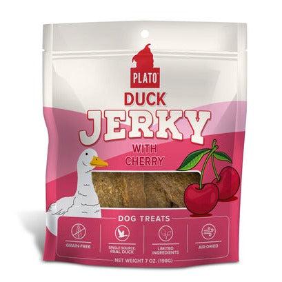 Plato's Duck Jerky with Cherries is the high-protein, single-source real duck treat that your dog will love! Boosted with cherries for added antioxidants, these treats are delicious and beneficial to your pet's overall immune health. Gently air-dried to lock in flavors and nutrients, these treats are sure to please and have your fur baby begging for more! Net wt 7 oz.
