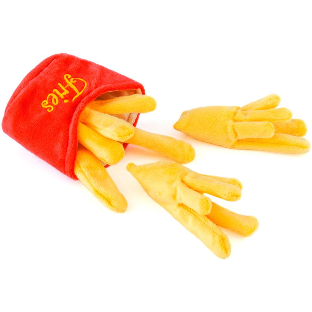 Fries are an American favorite and the American Classic Frenchie Fries Toy from P.L.A.Y. will soon become your doggie's favorite toy! Fun, plush interactive toy is bright and colorful, with removable fries. Repack the sleeve and watch your little buddy go to work removing them! Made with double layer exterior and double-stiched edges for durability. Fries are filled with crinkle paper to keep your dog's attention. Entertaining and fun for you both!