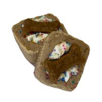 Fun and colorful PB Bites are the perfect bite-sized delicious noms your best bud will love, bursting with peanuty buttery goodness and made with human grade ingredients. Hand decorated with pink, blue or green sprinkles and topped with a cute bone-shaped cookie. Sold individually.