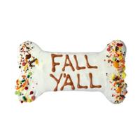 Celebrate the season with a Happy Fall Y'all Cookie from the Preppy Puppy Bakery! Made in the USA, these gourmet dog treats are baked with mouthwatering peanut butter and hand-decorated with yummy yogurt icing that your pooch will adore. And, since they're wheat, corn, and soy-free, they're great for pups with allergies, too! A festive fall snack, your favorite furball will love chowing down on this tasty treat!