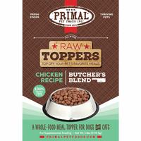 It's time to bring dinner back to the basics- naturally nutritious, yet satisfying those primal urges. With Butcher's Blend Raw Toppers, it's never been easier to add high-quality raw meat to your pet's diet. This chicken recipe includes: fresh chicken for superior levels of amino and essential fatty acids and finely ground, fresh chicken bones for a natural source of calcium. This supplemental feeding solution goes great with kibble or canned food, is moisture-rich and wholesomely nourishing for both dogs and cats.