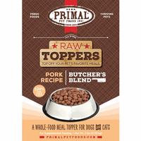 It's time to bring dinner back to the basics- naturally nutritious, yet satisfying those primal urges. With Butcher's Blend Raw Toppers, it's never been easier to add high-quality raw meat to your pet's diet. This pork recipe includes: fresh pork for superior levels of amino and essential fatty acids and finely ground, fresh pork bones for a natural source of calcium. This supplemental feeding solution goes great with kibble or canned food, is moisture-rich and wholesomely nourishing for both dogs and cats.