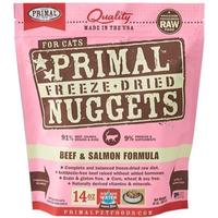 A favorite land and sea combination, Primal's Feline Raw Freeze-Dried Nuggets Beef & Salmon Formula will bring even the finickiest kitties to the bowl. Fresh grass-fed beef, wild-caught salmon, and organic produce are packed into this recipe, providing superior levels of amino and essential fatty acids from salmon and natural food-derived vitamins (no synthetics!) with added taurine for optimum retinal health. Easy to feed, simply scoop and rehydrate with water, bone broth or goat's milk for a delicious and satisfying meal your cat will love. Made in USA.
