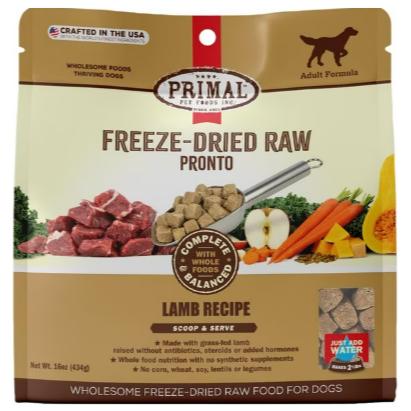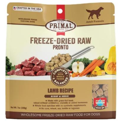 Treat your pooch to a deliciously meaty meal with Primal's new Freeze Dried Raw Pronto Lamb Formula for Dogs! This USA-made recipe features savory grass-fed lamb and USDA-certified organic produce for a tasty fresh food blend that will blow your pup's mind. Crafted without synthetic vitamins or minerals, this highly digestible formula is designed so that your furball can absorb as many whole-food nutrients as possible. And, thanks to its shelf-stable, freeze-dried formula, it's convenient to feed. Simply scoop some into your dog's bowl, add some bone broth or goat's milk, and let them scarf it all down! You can even feed it to them dry depending on what they like best. Full of flavor and packed with protein, this nutritious formula is just what your furry friend needs to make mealtime exciting again!