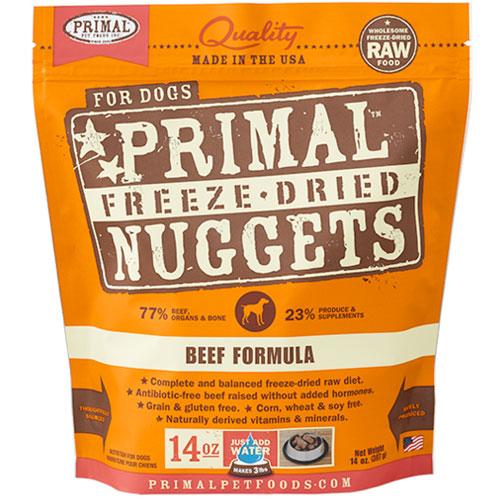 Let your dog connect to its primal side with the Primal Freeze Dried Beef Formula for Dogs! This freeze dried dog food contains antibiotic, hormone, and steroid free beef. Plus Primal Freeze Dried Beef Formula for Dogs contains ground bone for added calcium. Your dog will gobble up this organic and grain free dog food formula! It won't know it's being spoiled with essential vitamins and minerals! So let your dog let out its inner wolf with the Primal Freeze Dried Beef Formula for Dogs!
