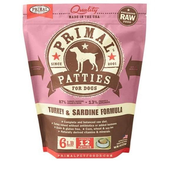 A land and sea feast, Primal's Turkey & Sardine Formula Raw Frozen Dog Food features humanely sourced fresh turkey and sustainably sourced cold-water whole sardines for superior levels of amino and essential fatty acids. Added organic produce provides food-derived vitamins, and finely ground fresh lamb bones provide optimum levels of calcium. Superb nutrition in a savory and delicious recipe your dog will love! Made in the USA.