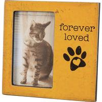 Pay tribute to a beloved pet with a special memorial keepsake. The "Forever Loved" Plaque Frame from Primitives by Kathy is a soft gold painted frame with a sweet pawprint and forever loved sentiment. Frame size is 5" x 5", fits a treasured 3" x 5" photo and has a free-standing metal easel back. A thoughtful and lovely gift for yourself or someone special.