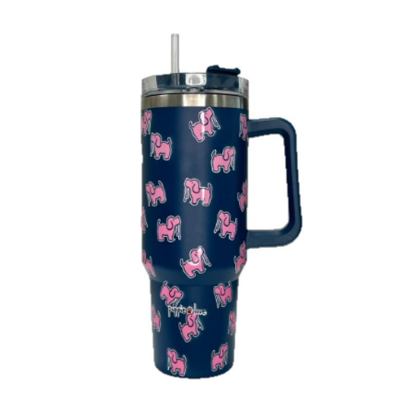 Keep your drink cool all day with Puppie Love 40 oz Stainless Steel Navy Tumbler! Featuring a large handle for easy carry and a straw for when you're on the go, this tumbler is perfect for personal use or makes a great gift. Covered in adorable pink puppies, this cup is perfect for any puppy lover.