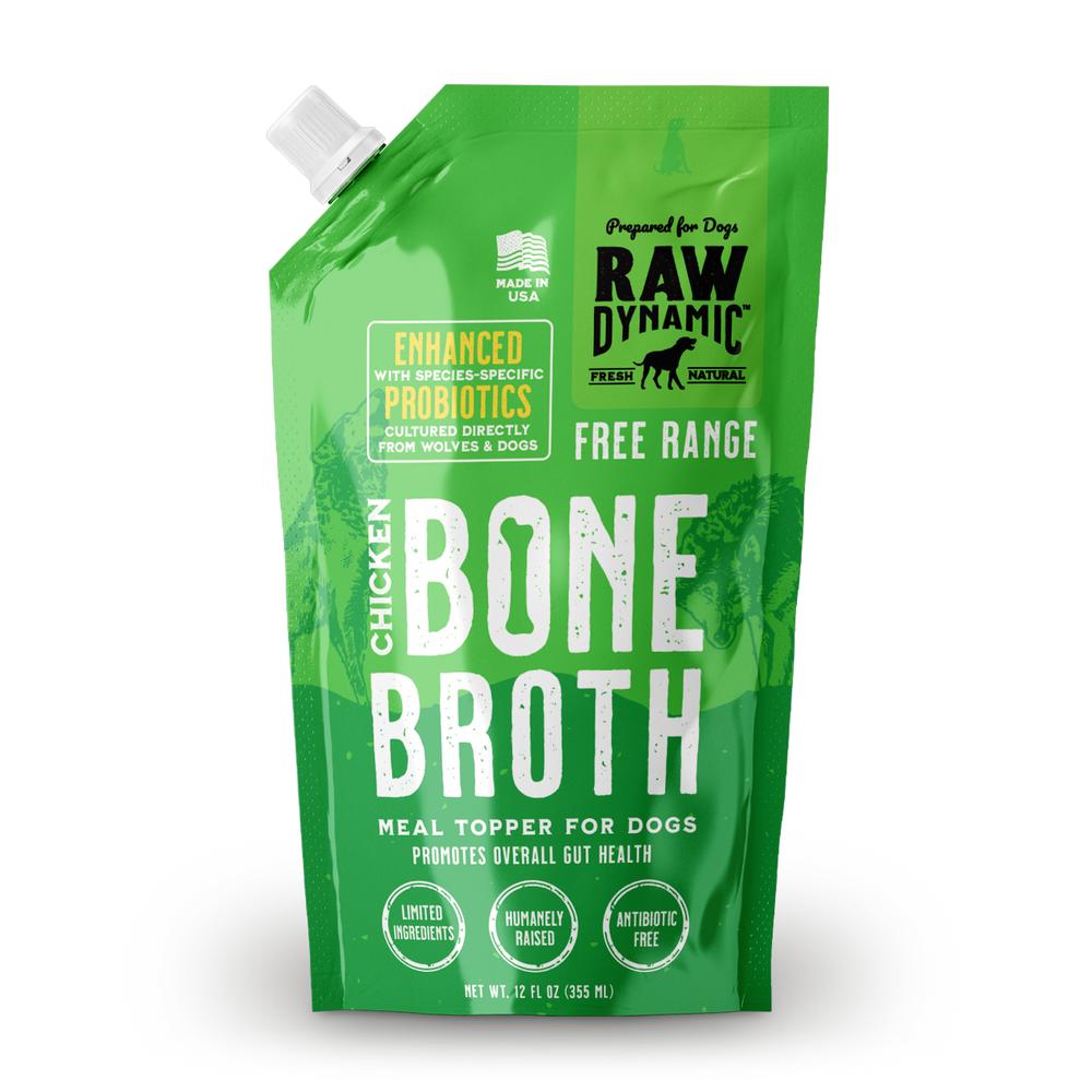 Sip, slurp, and support gut health! Raw Dynamic’s Free-Range Chicken Bone Broth is gently simmered in small batches and enhanced with species-specific probiotics cultured from wolves. This savory topper helps nourish the gut microbiome, support digestion, and add irresistible flavor to any meal. Whether you pour it over freeze-dried food, kibble, or use it as a hydrating snack, this broth brings serious tail-wagging benefits.