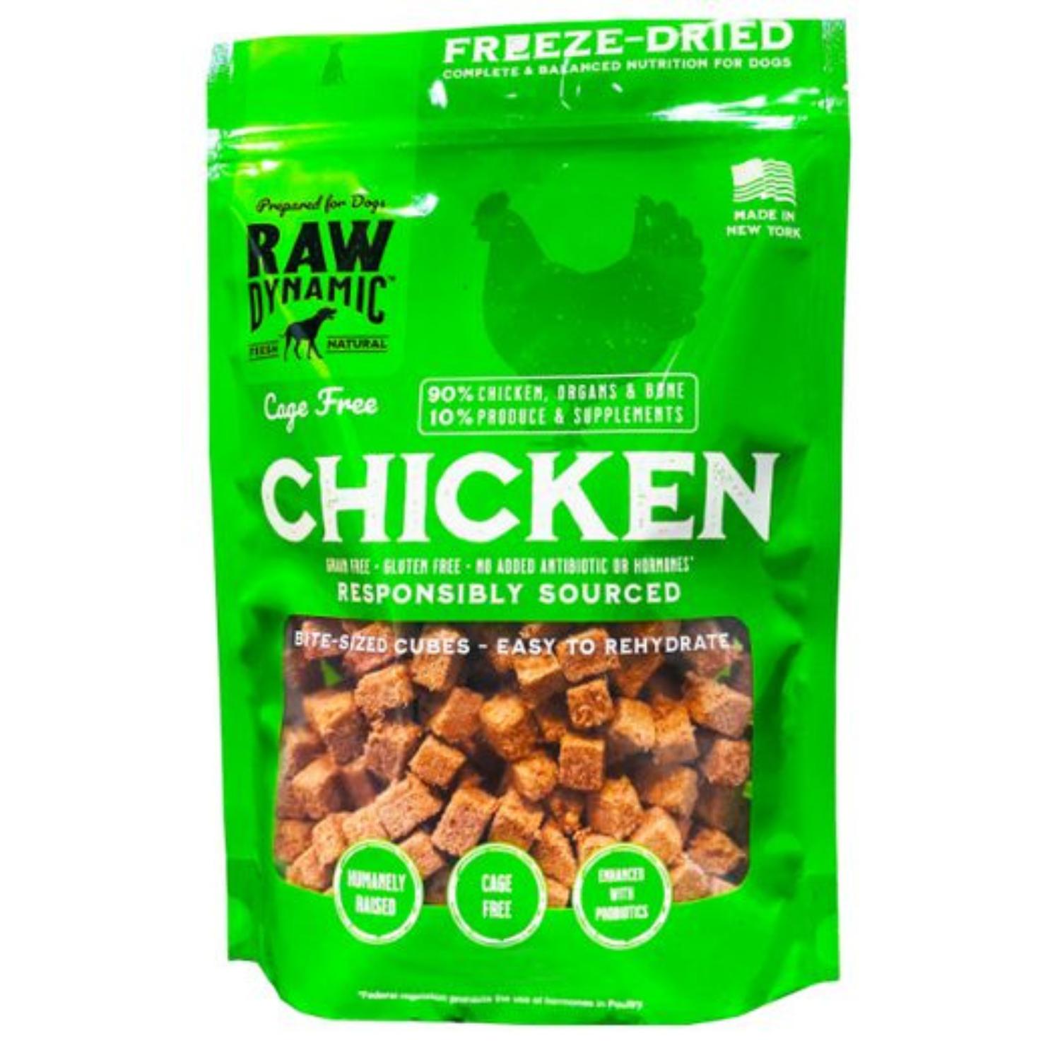 Keep it simple, keep it delicious! Raw Dynamic’s Freeze-Dried Chicken Formula features cage-free chicken, organic produce, and species-specific probiotics—all freeze-dried into quick-thaw cubes your pup will gobble up. It’s the easy way to feed raw with clean, complete nutrition in every bite.