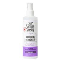 Keep your best friend smelling fresh and looking their best in between full grooming sessions with this Lavender Probiotic Deodorizer from Skout's Honor. Daily use hydrates and deodorizes the skin and coat. Infused with a live, colony-forming probiotic kefir culture and avocado oil to hydrate and soften for a beautiful tangle-free coat. The probiotics support the good bacteria on your dog's skin that serve as a natural defense against environmental damage and inflammation. Great for pets who have problems with itching, odor, dryness, hot spots and excessive shedding. Suitable for all skin types and conditions. 8 fluid oz.