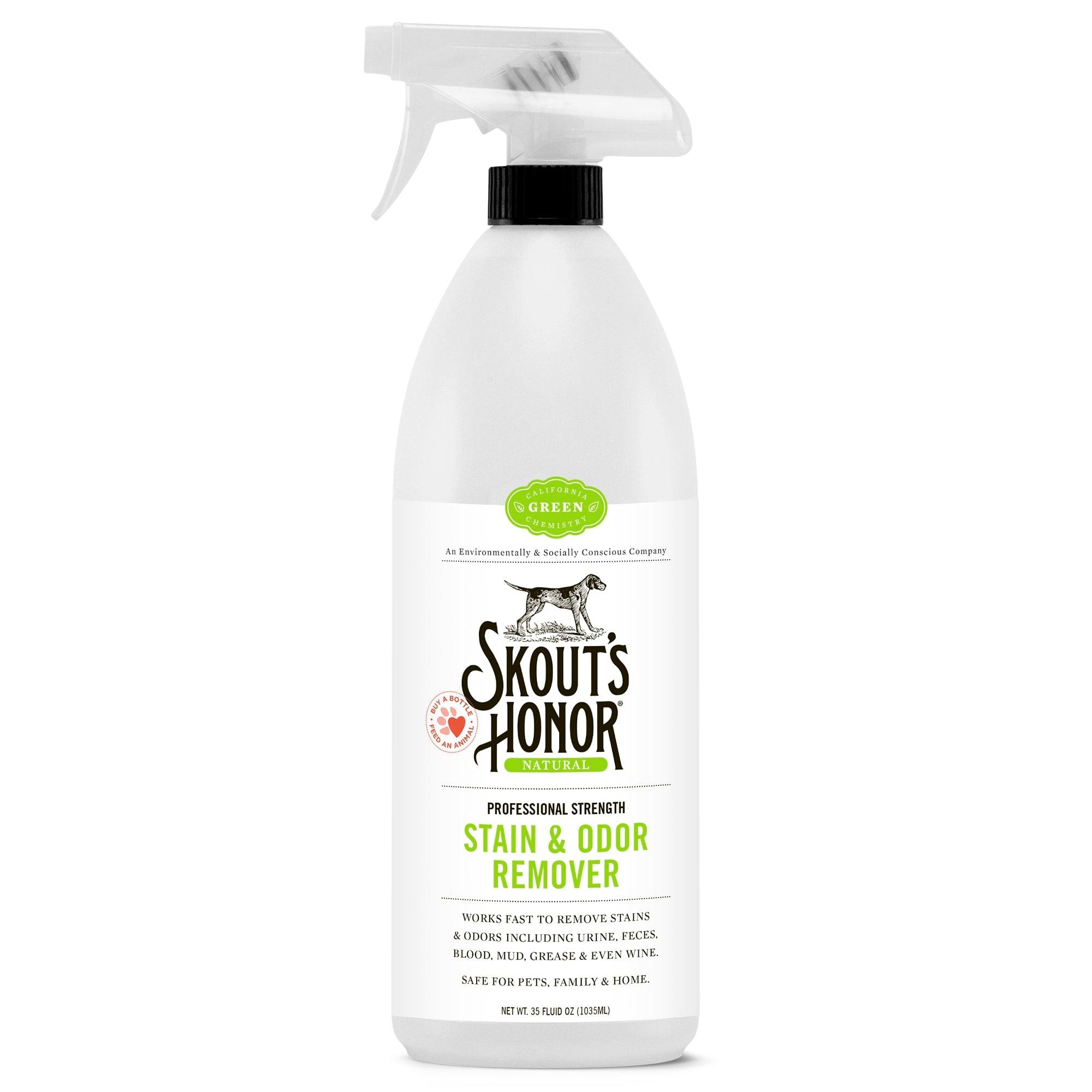 The Pet Stain & Odor Remover from Skout's Honor with Biokore technology tackles stains and odors at the molecular level, leaving your home cleaner and fresher. Removes stains and odors including urine, feces, blood, mud, grease and even wine! This is not an odor cover-up, it's a true odor eliminator. 35 fl. oz.