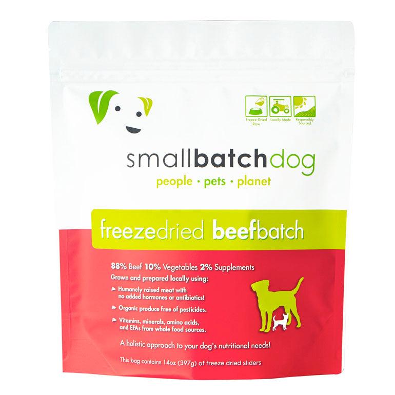 Smallbatch knows your pets deserve the best. That's why everything that comes out of their kitchens is made with the same love and care they'd use if it was for their own furry friends. Perfectly freeze-dried for your convenience, each of their Beef Batch sliders are made of 88% humanely raised grass-fed beef, beef hearts, beef livers, beef kidneys, and beef bone. For an extra boost of nutrition, organic produce like carrots and yams, and natural supplements like 100% pure salmon oil and raw unfiltered apple cider vinegar are added. All organic. All packed to the brim with nutrients. There are no grains, fillers, or synthetic supplements - meaning every last vitamin and nutrient is derived from the ingredients themselves.