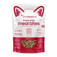 SmallBatch Beef Freeze-Dried Meal Bites Cat Food is the naturally nutritious meal your cat has been waiting for! Made in the USA with 98% meat, organs, and bones, this wholesome freeze-dried recipe is perfect for your little carnivore. As a complete and balanced meal, all you need to do is add water, goat's milk, or bone broth to rehydrate this delightfully delicious food at mealtime. You can even mix some of these bites into your cat's favorite wet or dry food to add a healthy boost to their bowl. Perfect for felines of all ages, your furball will fall in love with the meaty goodness of this freeze-dried food!