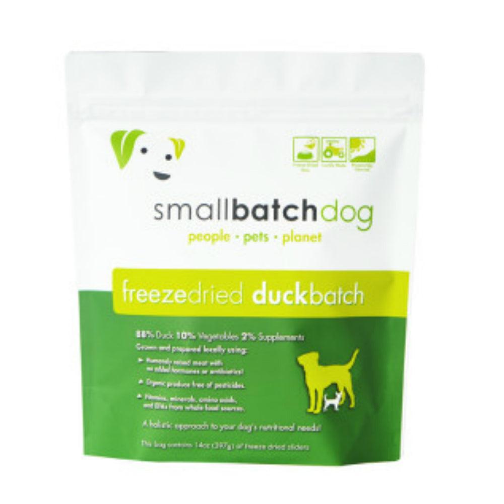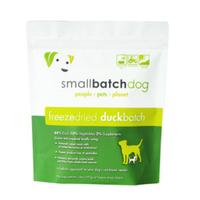 Small Batch Freeze Dried Duck Batch is pure, wholesome goodness for your dog! Single source protein formula is made with all natural humanely raised and harvested meats, hormone and antibiotic-free from start to finish. Certified organic, non-GMO, fresh, whole vegetables and herbs. No synthetic vitamin packs, just all natural vitamins, minerals, and nutrients from whole food sources. Freeze dried formula simplifies meal time, and is easy to store and feed. Perfect for travel, as a topper, or a tasty treat! Add warm water or bone broth for a super delicious, complete and balanced meal.