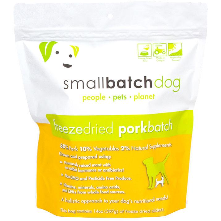 Smallbatch knows your pets deserve the best. That's why everything that comes out of their kitchens is made with the same love and care they would use if it was for their own furry friends. Perfectly freeze-dried for your convenience, each of their Pork Batch sliders are made of 88% humanely raised and harvested pork, pork hearts, pork livers, and pork kidneys. For an extra boost of nutrition, organic produce like squash and celery, and natural supplements like 100% pure salmon oil and raw unfiltered apple cider vinegar are added. All organic. All packed to the brim with nutrients. There are no grains, fillers, or synthetic supplements meaning every last vitamin and nutrient is derived from the ingredients themselves.
