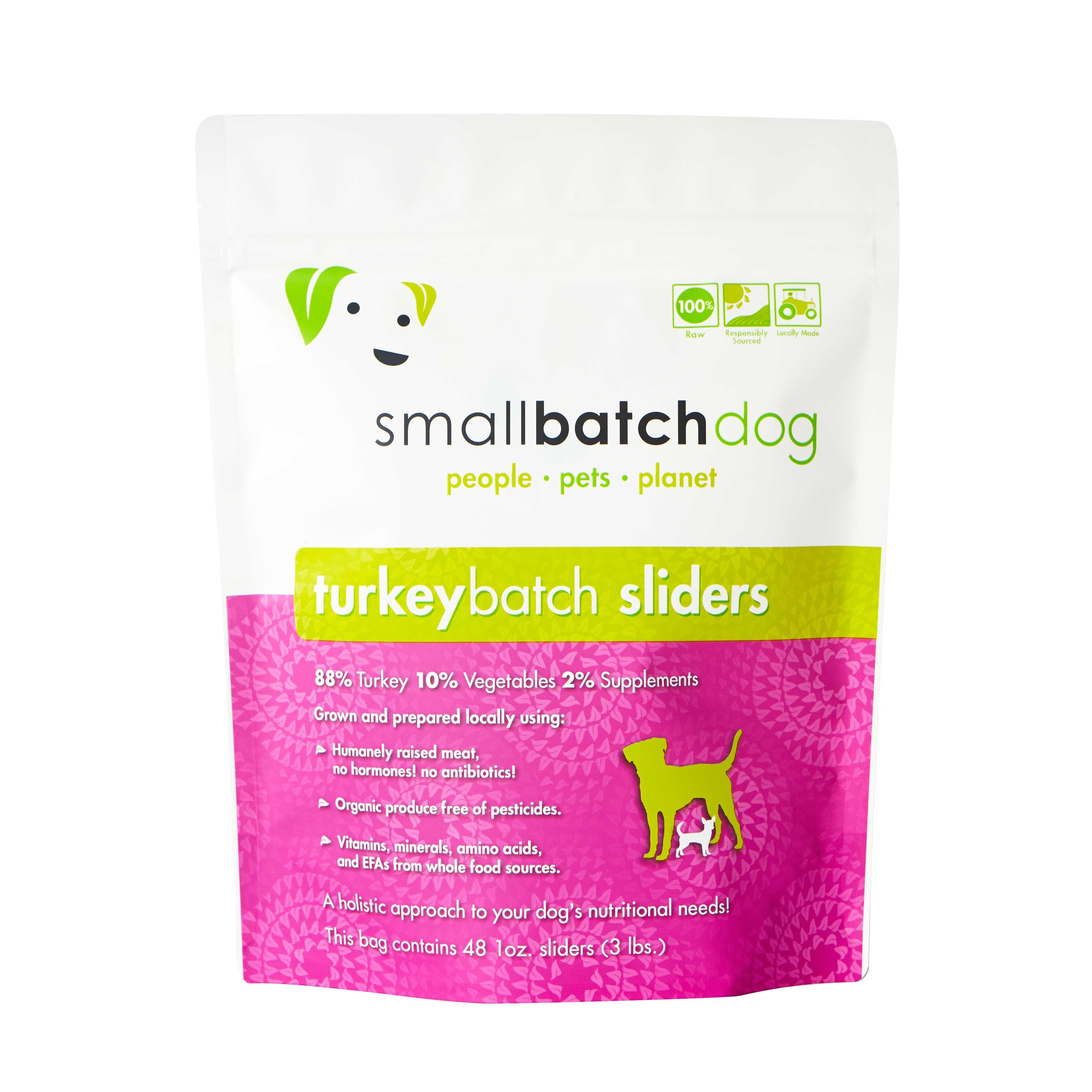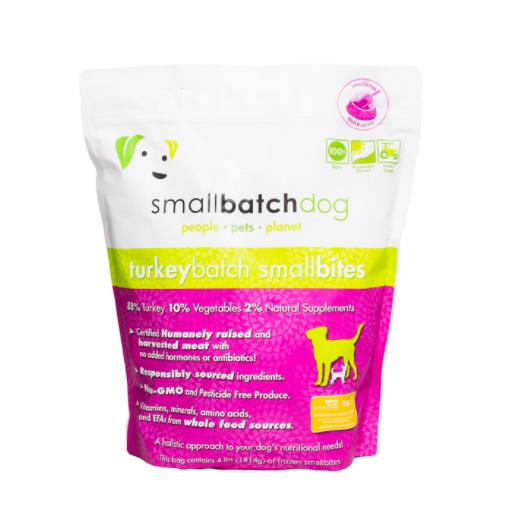 Small Batch Turkey Batch is pure, wholesome goodness for your dog! This single-source protein formula is made with all-natural humanely raised and harvested meats, hormone and antibiotic-free from start to finish. Certified organic, non-GMO, fresh, whole vegetables and herbs. No synthetic vitamin packs, just all-natural vitamins, minerals, and nutrients from whole food sources. Simply thaw in the refrigerator and serve as a complete and balanced meal.