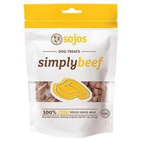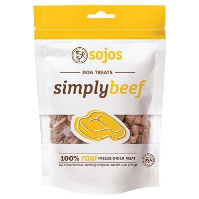 Healthy and nutritious Sojos Simply Beef Dog Treats are single ingredient freeze-dried goodies your best bud will love! Real raw meat is gently freeze-dried to maintain healthy enzymes for a more nutritious snack. Wholesome and delicious, these yummy treats contain no artificial flavors, colors or preservatives and are the perfect size for training or everyday treating.