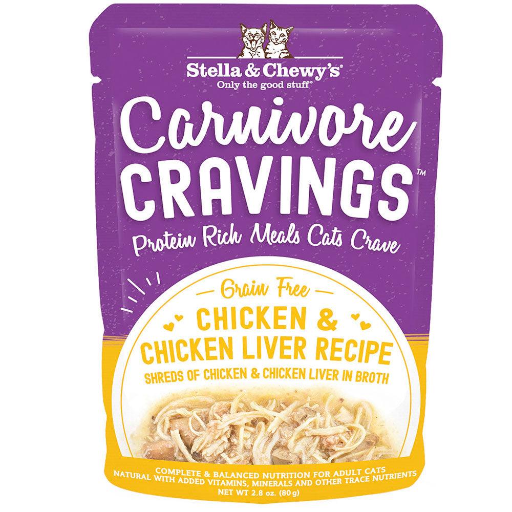 Your cat will be purring for more when it gets the taste of the real shredded cage free meat in Carnivore Cravings Chicken and Chicken Liver. This protein and moisture rich diet is perfect as a complete and balanced meal or as a kibble topper. Carnivore Cravings is grain free, legume-free and potato-free. No carrageenan or MSG are used. Add this quality protein for a vibrant and healthy cat.