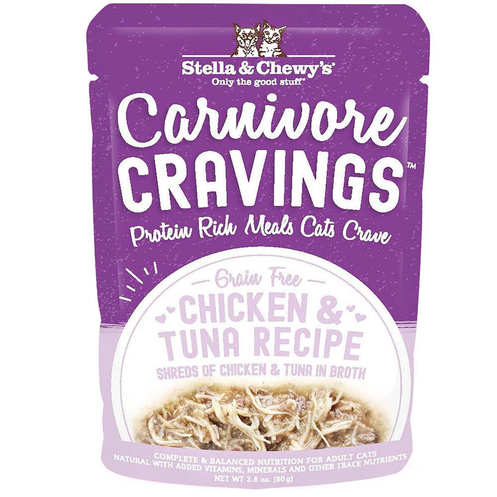 Your cat will be purring for more when it gets the taste of the real shredded wild caught fish and cage free meat in Carnivore Cravings Chicken and Tuna. This protein and moisture rich diet is perfect as a complete and balanced meal or as a kibble topper. Carnivore Cravings is grain free, legume-free and potato-free. No carrageenan or MSG are used. Add this quality protein for a vibrant and healthy cat.