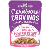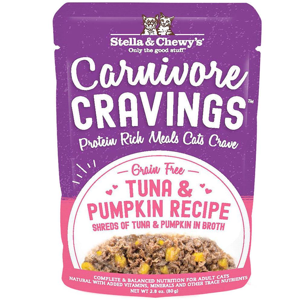 Your cat will be purring for more when it gets the taste of the real shredded wild caught fish in Carnivore Cravings Tuna and Pumpkin. This protein and moisture rich diet is perfect as a complete and balanced meal or as a kibble topper. Carnivore Cravings is grain free, legume-free and potato-free. No carrageenan or MSG are used. Add this quality protein for a vibrant and healthy cat.