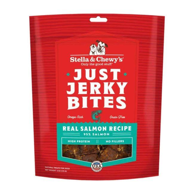 Your dog will find it hard to resist these Just Jerky Bites Real Salmon Recipe! Limited ingredient soft and chewy jerky treats are perfect to use as a high reward treat, or break into smaller pieces for training. Mouth-watering treats your pup will love!