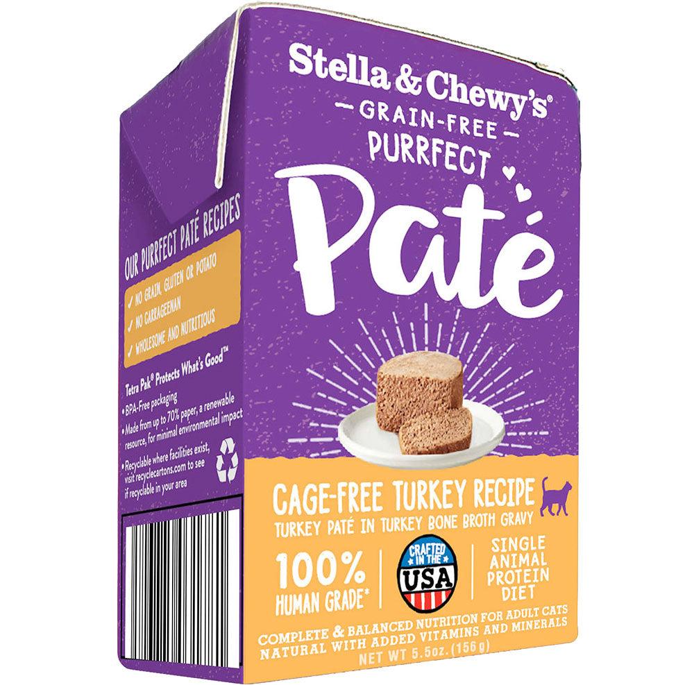 Stella & Chewy's Cage-free Turkey Purrfect Pates is so yummy and perfectly prepared, you'd think it was homemade! Kettle-cooked slowly in small batches, every ingredient is top-notch and human-grade like cage-free turkey, turkey liver, and pumpkin, all soaked in turkey bone broth to add flavorful moisture to your kitty's diet. There are no grains, hormones, potatoes, or GMOs because Stella's knows the pickiest member of your family will only settle for the best! Great as a topper or full meal.