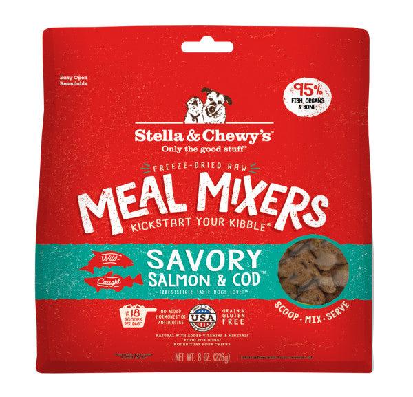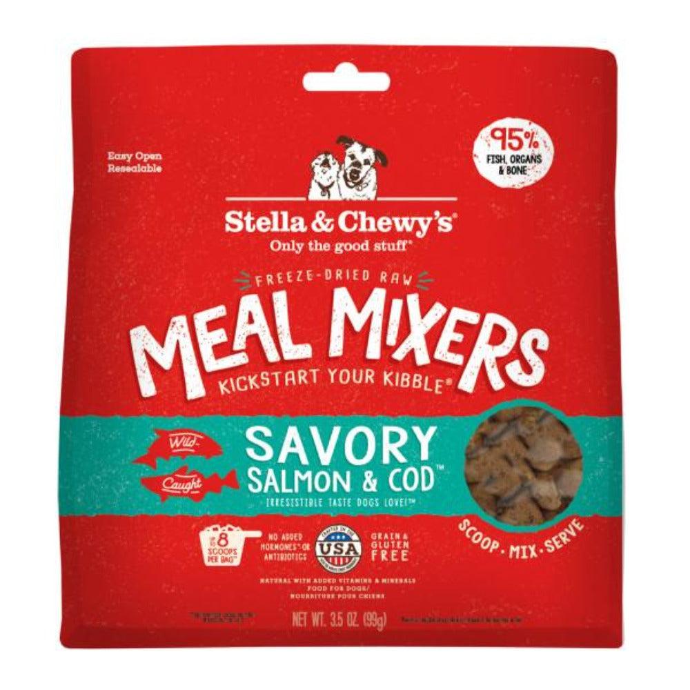 Looking for a great way to add some real high-quality raw food nutrition to your dog's diet? Want to give an extra-special meal or spice up that same kibble? Salmon & Cod Meal Mixers by Stella & Chewy's is the answer you've been looking for! You can add a scoop of Meal Mixers to any diet, such as dry kibble, and just mix it right on in with no other preparation required. It's real raw mouthwatering fish sure to entice your pup at mealtime.