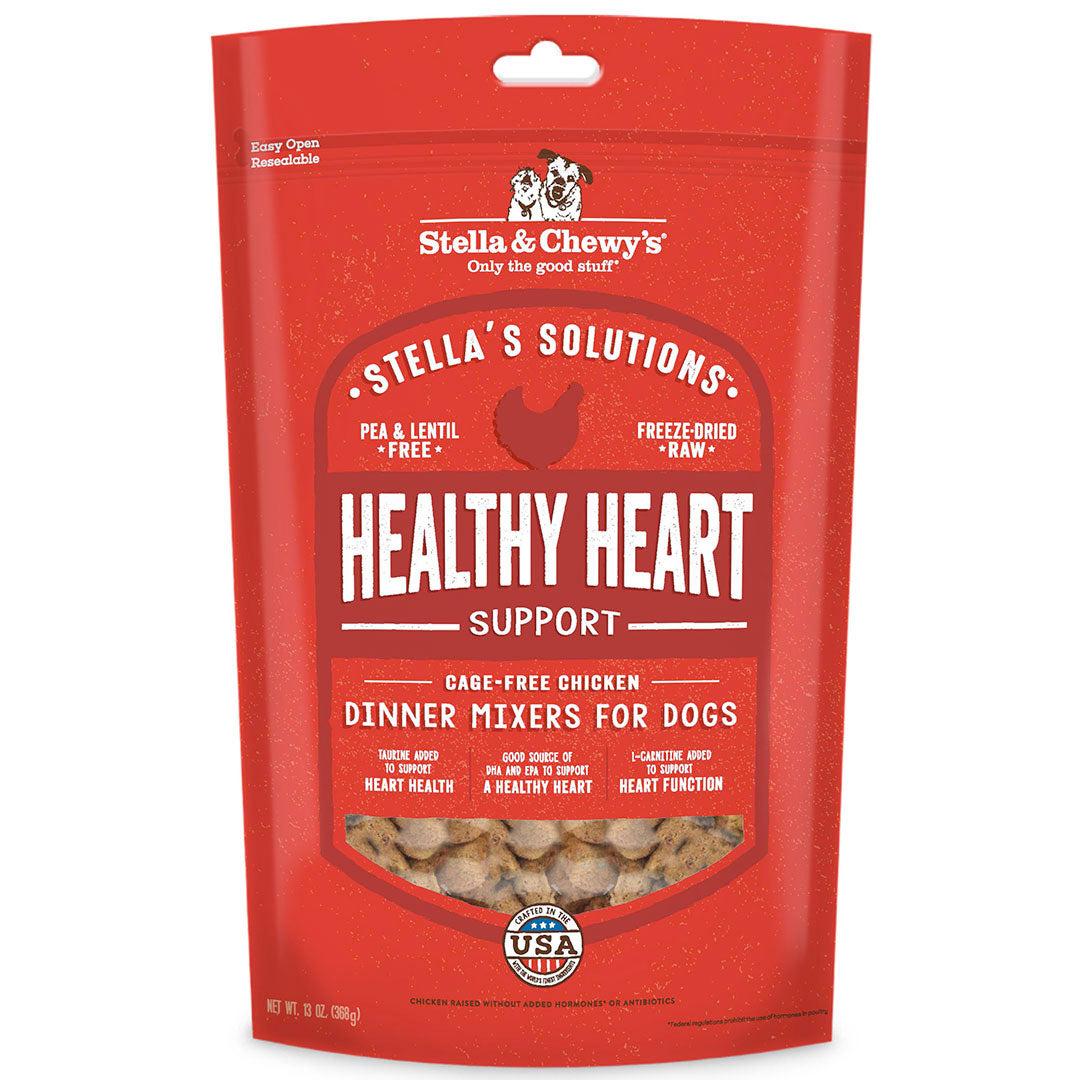Stella's Solutions Healthy Heart Support by Stella and Chewy's is a healthy food topper to help support your dog's heart health. This heart health booster uses cage free chicken, chicken hearts, and sardines to provide a natural source of taurine. Taurine is an essential amino acid that aids in preventing dilated cardiomyopathy in dogs. Mixed with a good source of DHA, EPA, and L-Carnitine will help support your furry friend's heart health! This formula is pea free, lentil free, and potato free with no ingredients from China. The small morsel size is perfect for training treats, too! The Stella's Solutions line has 4 other unique recipes to keep your dog fit and healthy!