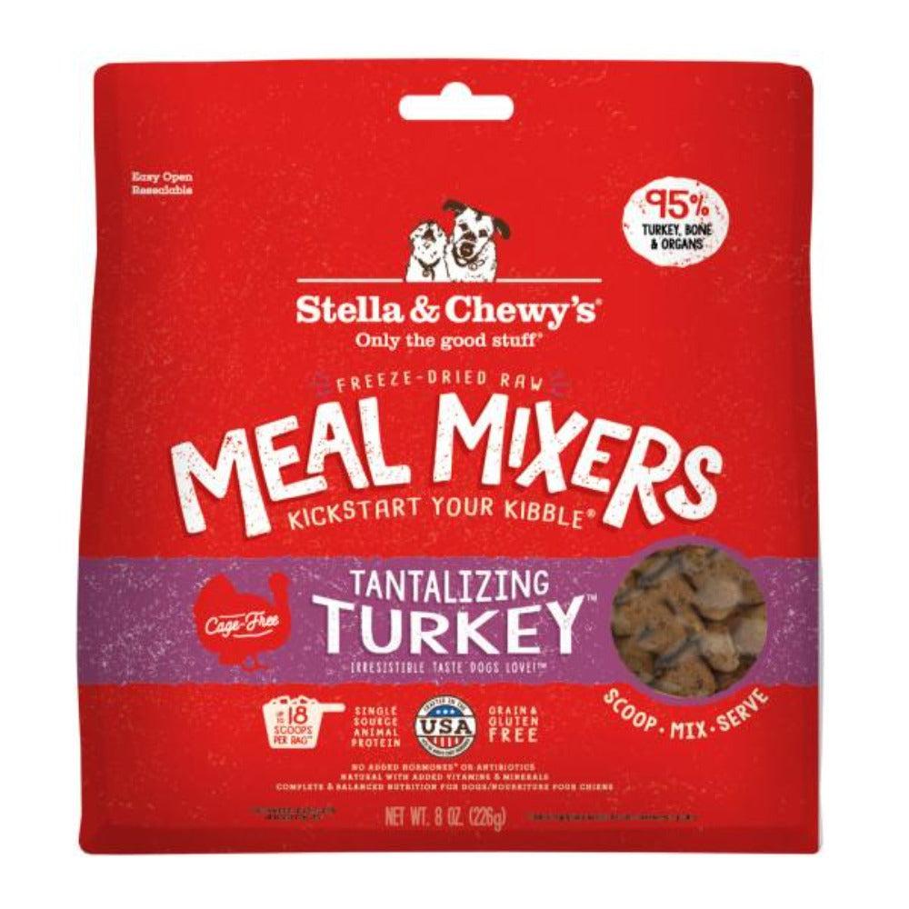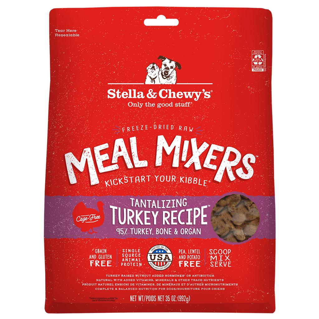 Looking for a great way to add some real high-quality raw food nutrition to your dog's diet? Want to give an extra-special meal or spice up that same kibble? Meal Mixers by Stella & Chewy's is the answer you've been looking for! You can add a scoop of Meal Mixers to any diet, such as dry kibble, and just mix it right on in with no other preparation required. It's real raw mouthwatering turkey sure to entice your pup at mealtime.