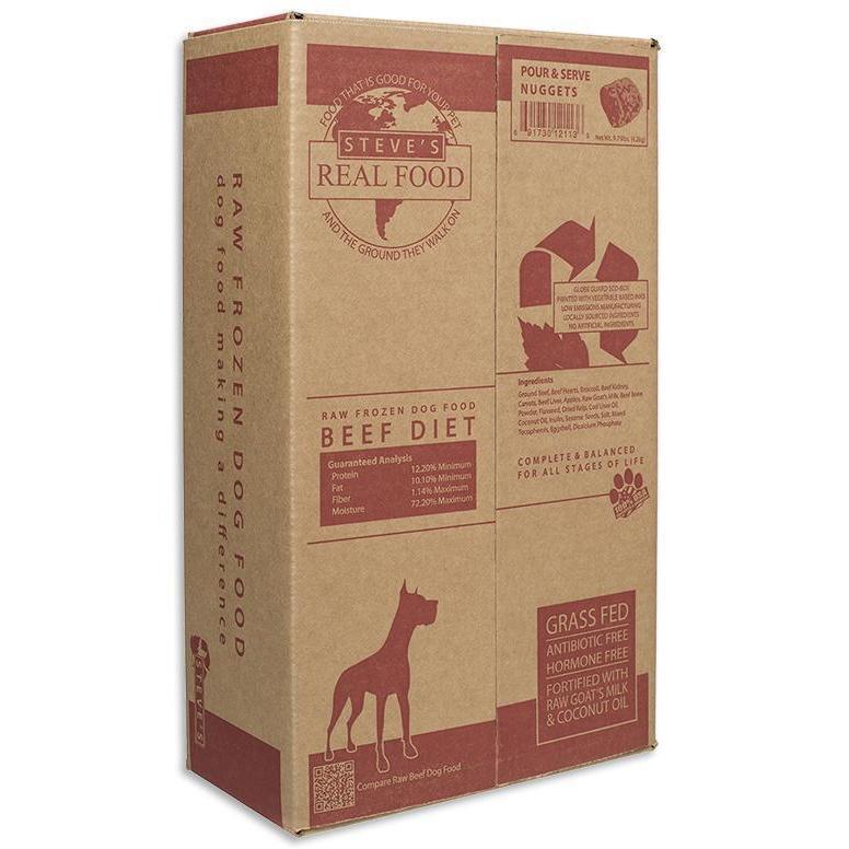 Steve's Real Food Beef Diet is a steak lover's dream! The first ingredient is savory beef, sourced from trusted, family-owned farms. Each bite also contains organic fruits and veggies like broccoli, apples, and celery with a touch of goat's milk for an extra boost of nutrients! There are no grains, added hormones, or byproducts. Just wholesome and hearty ingredients that will have your pet's mouth watering faster than you can say moo!