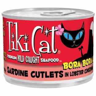 Take your cat to a tropical paradise with Tiki Cat Canned Cat Food! Bora Bora Luau Cat Food contains Sardine Cutlets in Lobster Consomme that will have your feline saying 'Aloha!' This canned cat food from Tiki Cat contains only the finest ingredients with fish caught in the South Pacific where mercury levels and pollutants are at their lowest possible levels. Your cat will be craving this cat food and drooling at every meal time!