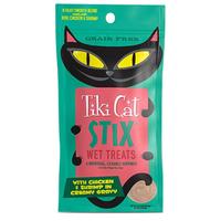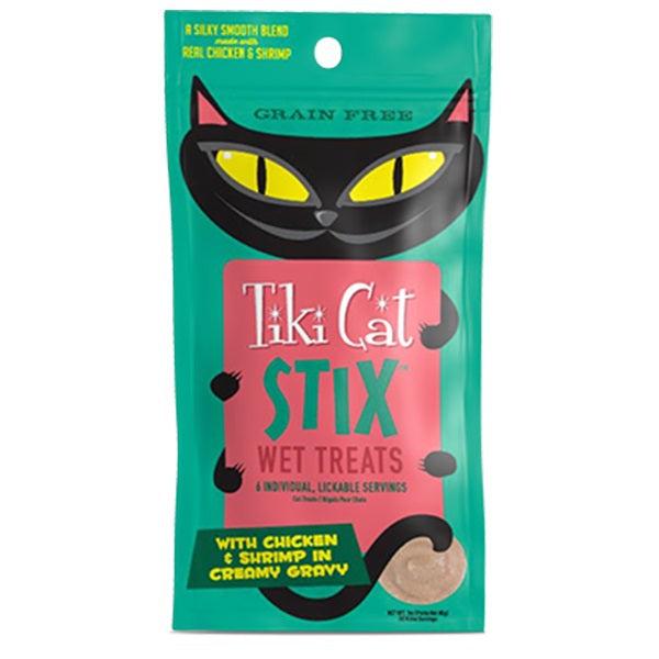 Tiki Cat Stix is a deliciously smooth chicken & shrimp mousse recipe for your best feline friend! Boost the protein and flavor of your cat's meal by serving as a meal topper, or feed as a delicious treat. Easy to serve, just tear open and squeeze, then watch your kitty pounce! Convenient packs of six individually-wrapped single servings. Net wt. 3 oz. bag.