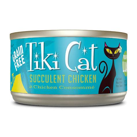 Take your cat to a tropical paradise with Tiki Cat Canned Cat Food! Puka Puka Luau Cat Food contains succulent chicken that will have your feline saying 'Aloha!' This canned cat food from Tiki Cat contains only the finest ingredients. Your cat will be craving this cat food and drooling at every meal time!