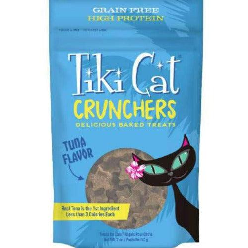 Cats love fish and crave protein. Your favorite feline will love these Tiki Cat Tuna Crunchers! High-protein, low-calorie, grain-free treats contain salmon oil and flaxseed for a healthy coat, and pumpkin to aid in digestion. Pure goodness in these perfectly sized, meaty treats for your favorite kitty. Net wt. 2 oz. Made in the USA.