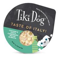 Buongiorno! Send your dog for a bite in Rome and have them back in time for your evening walk with Tiki Dogs Italian Carbonara meal! Inspired by some of Italys finest restaurants, every indulgent grain-free bite is full of yummy chicken chunks, bite-sized pasta, green peas, ham, and cheese! Perfect as a meal for small dogs, a topper, or even a tasty treat!