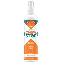 Spray away bad habits with TropiClean 4-In-1 ChewStop Behavior Aid! This gentle, non-toxic deterrent is designed to discourage destructive chewing on furniture, shoes, cords, and more. Formulated with pet-safe ingredients and bitter flavors pets dislike, it's an easy way to protect your home—naturally.