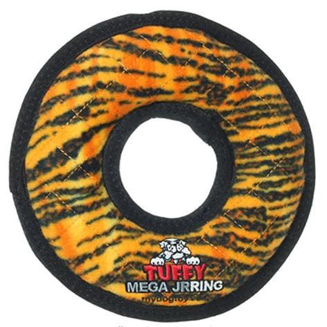 When you need a mega toy look for the Mega Junior Ring from Tuffys! This durable dog toy has a multitude of stitching layers to stand up against your dog's tough chewing. The Mega Junior Ring has soft edges though to be easy on your dog's mouth. Plus this tough ring can float, has 4 squeakers and is machine washable! On the Tuffy's Tuff Scale, the Mega Ring scores a 10/10 to be the ultimate dog toy!