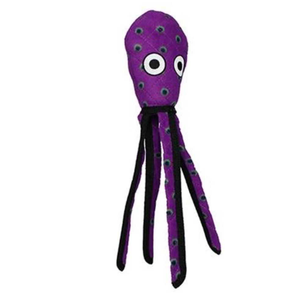 Tuffy's Ocean Creature Squid dog toy has a comical expression and is a colorful, fun toy that both you and your pet will love! Long legs are perfect for a game of fetch, a friendly game of tug or keep-away, or just a convenient way for your pup to carry their new best friend around! Squeaker inside is sewn into it's own pocket. Tuffy toys are durable toys made with several layers of fabric and rows of stitching, for long lasting fun. Also great as a naptime buddy for your pet. Great as a playtime toy, not a chew toy. Supervision recommended for heavy chewers.