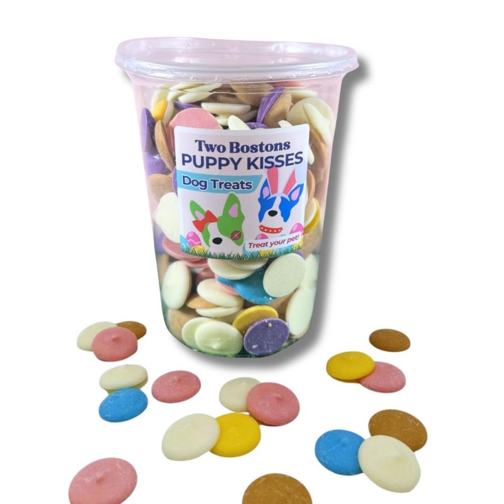What dog can resist? This seasonal combination contains Puppy Kisses made from yogurt and peanut butter! Your pup is sure to to love these fantastic flavors! Plus they are all made of pup-safe ingredients! This colorful mix of fun colors is perfect for celebrating Easter.