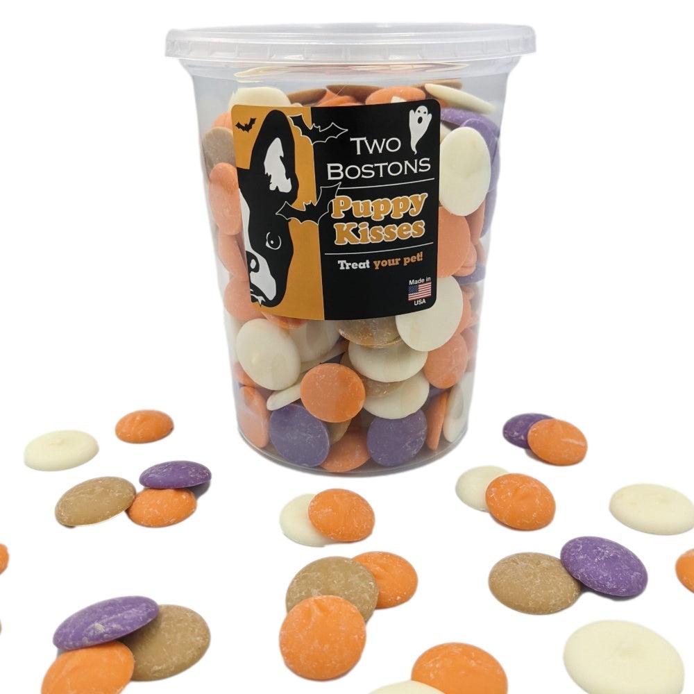 Halloween Puppy Kisses from Two Bostons are favorite treats with our canine customers! This fun collection is packed with yummy vanilla and peanut butter kisses in festive autumn colors, perfect for treating your little trickster!